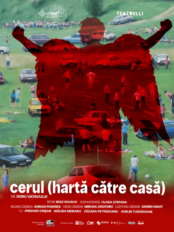„cerul (hartă către casă)” este un spectacol-poem despre efortul care ne definește, despre oboseală, visare și nevoia de orientare atunci când drumul se înnorează. Este un spectacol despre acel moment rar în care ridicăm privirea și descoperim cerul – poate singurul loc în care harta către casă a existat dintotdeauna.