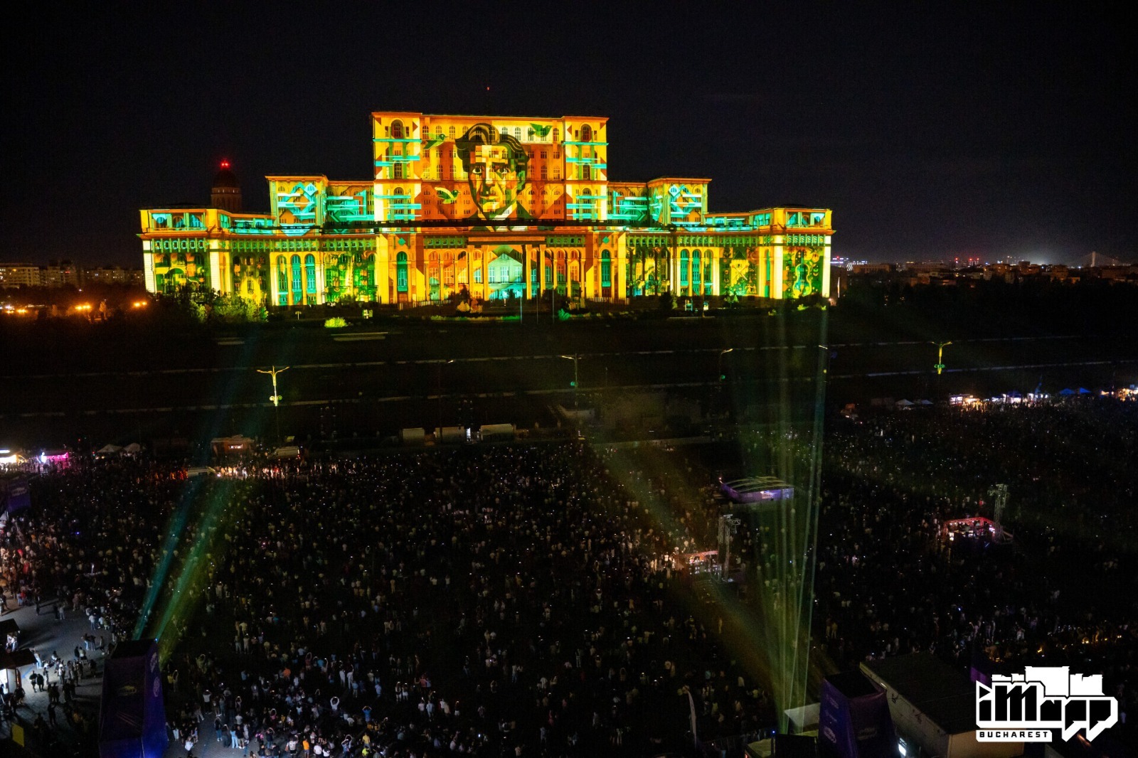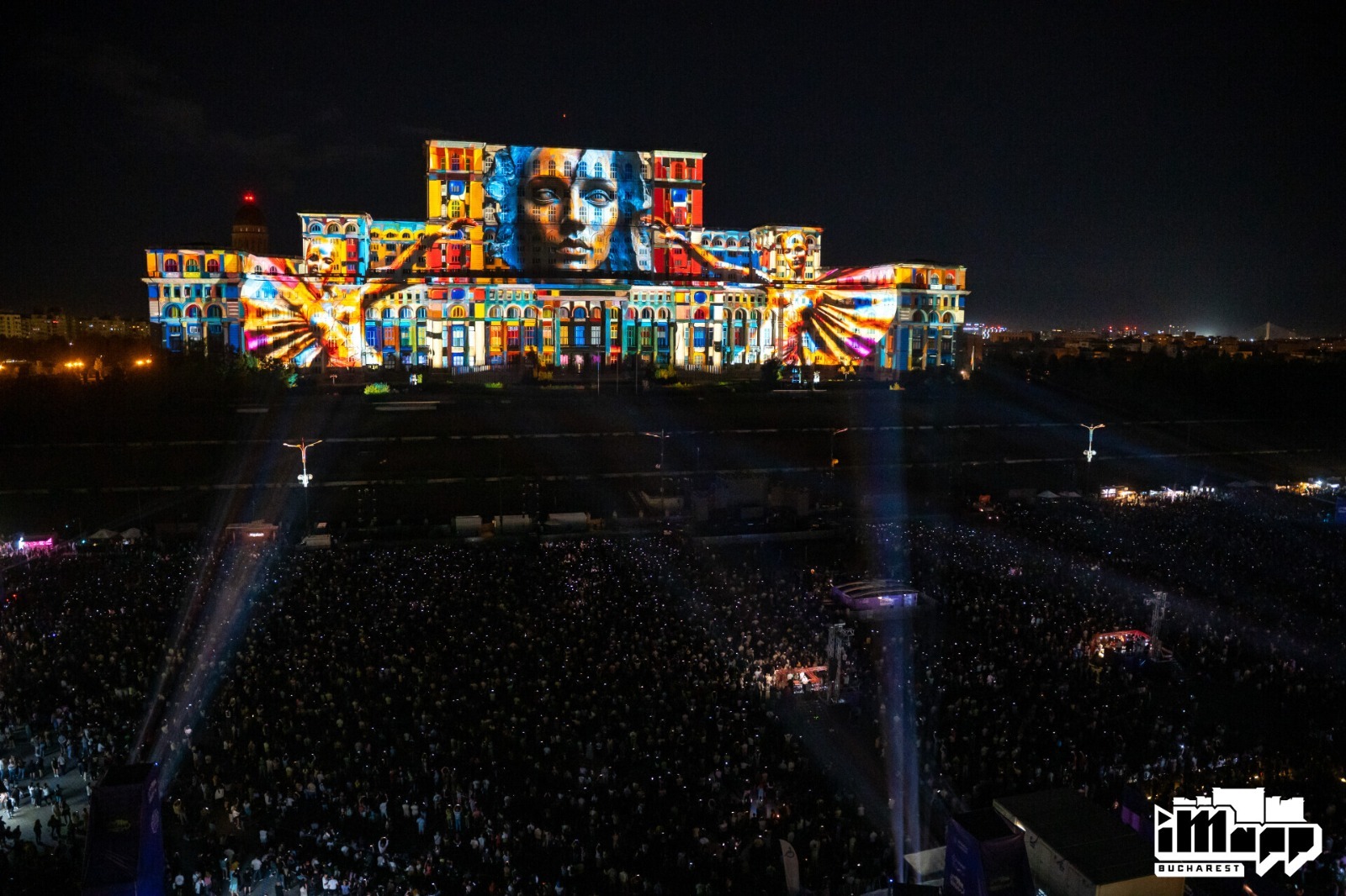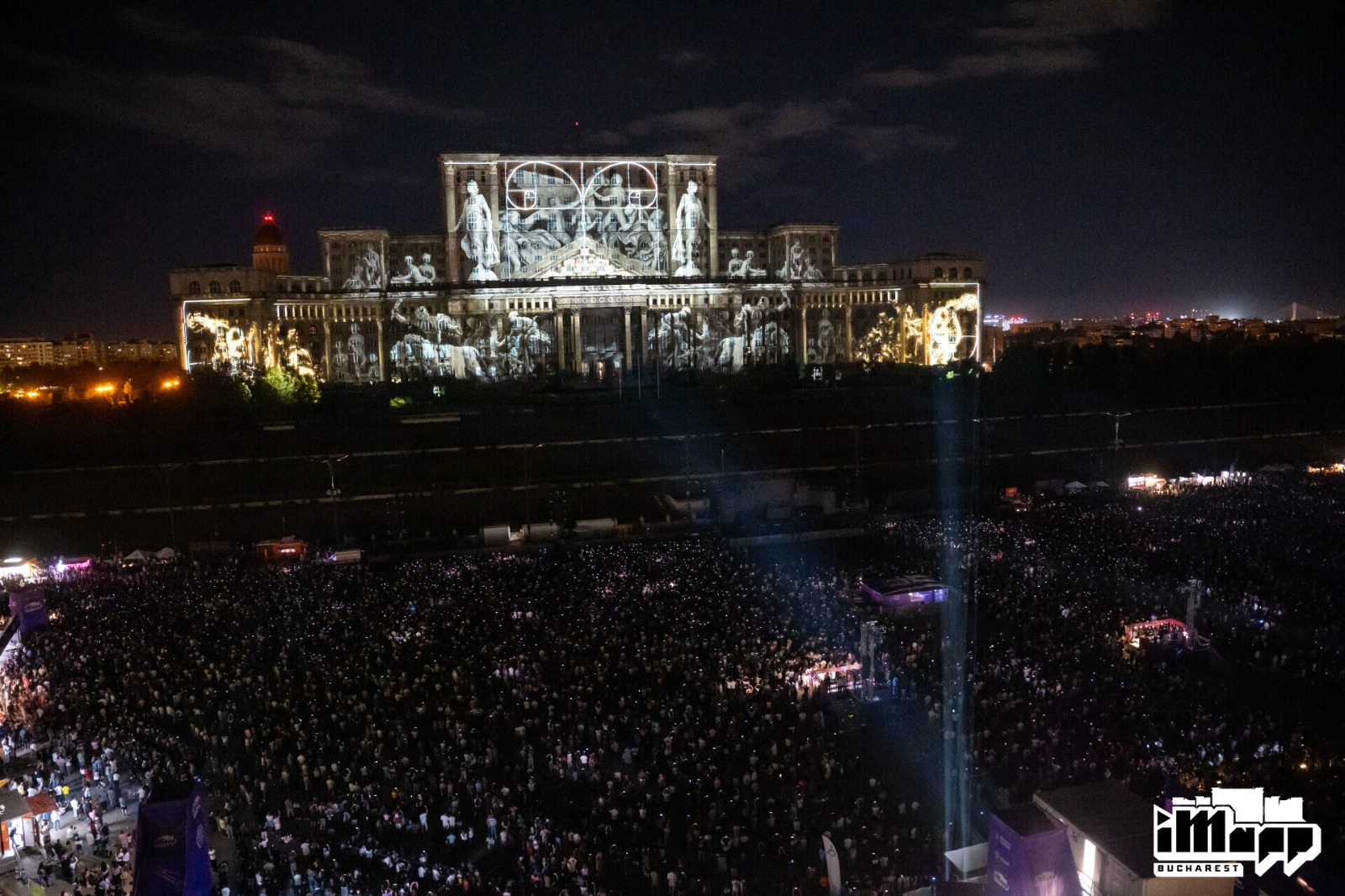 Saturday night was dedicated to the international iMapp Bucharest – Winners League competition, which showcased the artworks of the winners of some of the world’s most prestigious light festivals on the 23,000-square-meter façade of the Palace of the Parliament – the largest projection surface in the world: Chongqing International Light Art Festival from CHINA / winner DEPICTING TERRITORY from CHINA, Genius Loci Weimar Festival from GERMANy / winner mammasONica from ITALY, Jakarta Light Festival from INDONESIA / winner THE VISUAL 084 from VIETNAM, Luma Projection Arts Festival form USA / winner GLITCH from BELGIUM, 1minute Projection Mapping Competition from JAPAN / winner VALI CHINCIȘAN from ROMANIA, Video Mapping Festival from FRANCE / winner HANS BOLZ from GERMANY, Zsolnay Light Festival from HUNGARY / winner ELEKTRICK.ME from BULGARIA.
