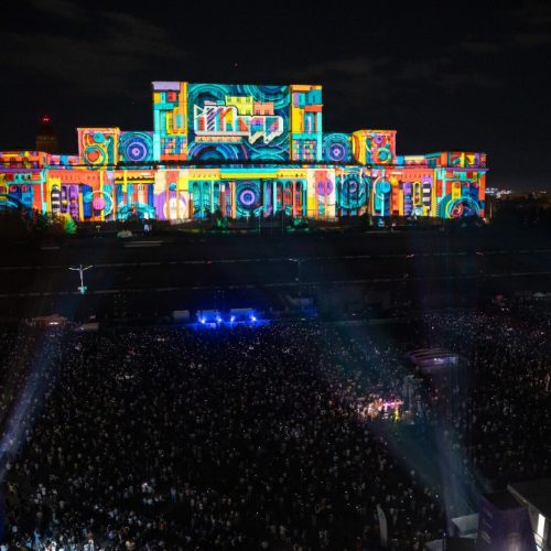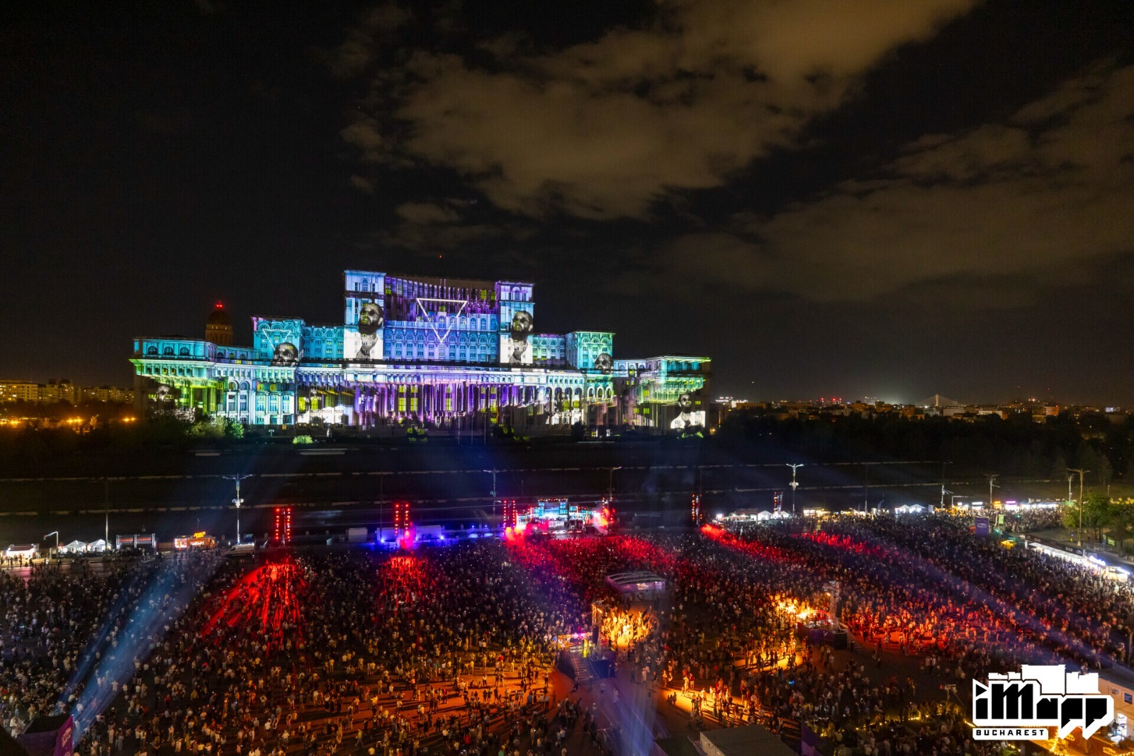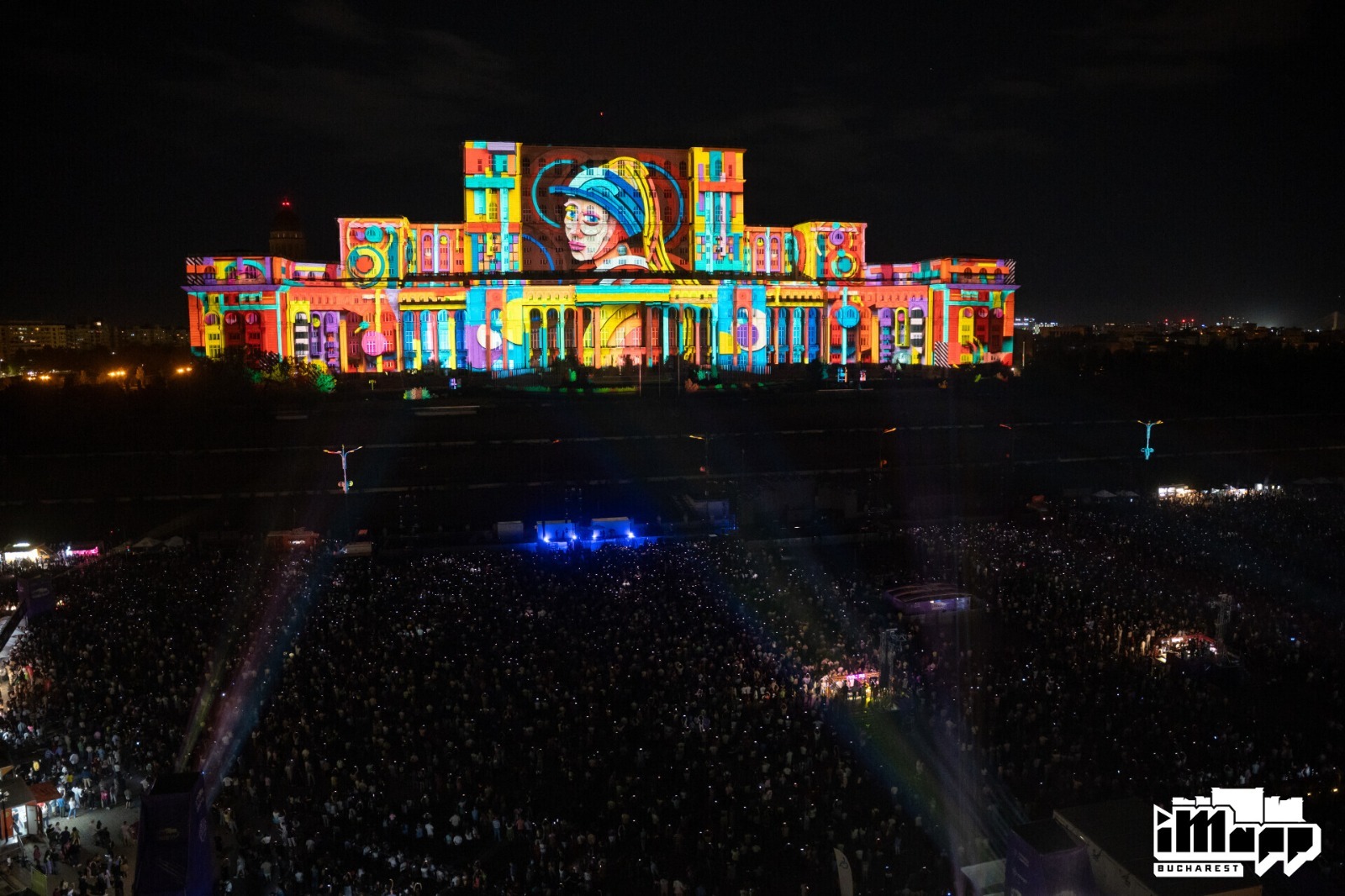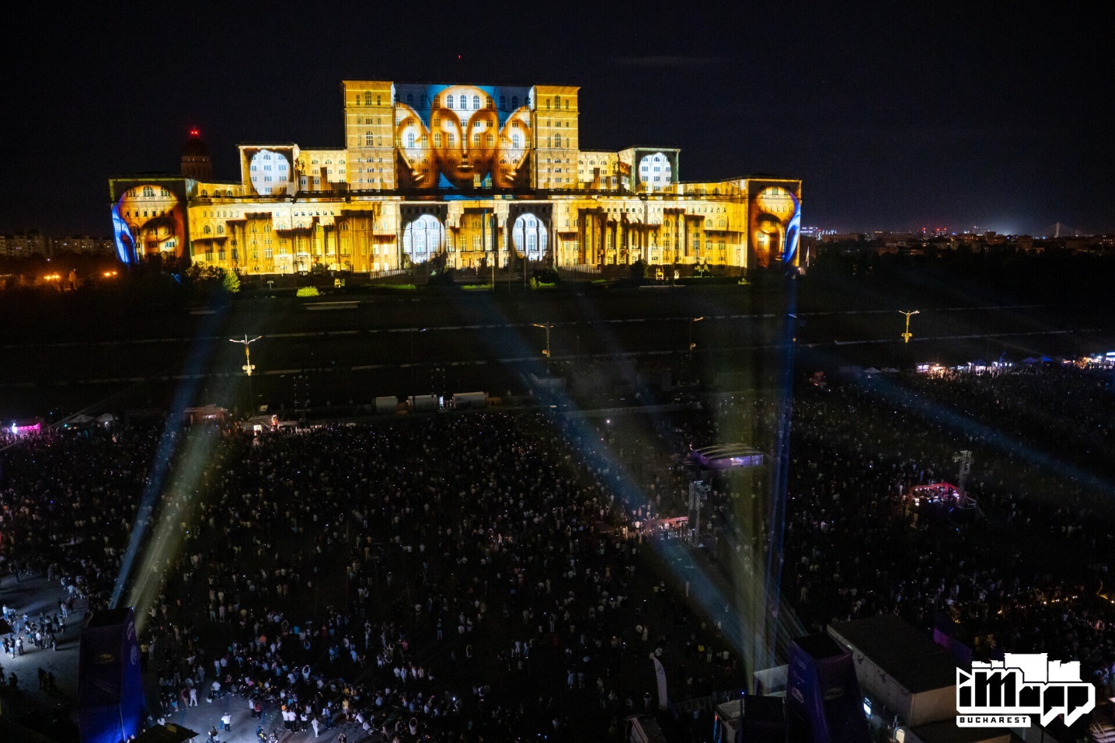 Saturday night was dedicated to the international iMapp Bucharest – Winners League competition, which showcased the artworks of the winners of some of the world’s most prestigious light festivals on the 23,000-square-meter façade of the Palace of the Parliament – the largest projection surface in the world: Chongqing International Light Art Festival from CHINA / winner DEPICTING TERRITORY from CHINA, Genius Loci Weimar Festival from GERMANy / winner mammasONica from ITALY, Jakarta Light Festival from INDONESIA / winner THE VISUAL 084 from VIETNAM, Luma Projection Arts Festival form USA / winner GLITCH from BELGIUM, 1minute Projection Mapping Competition from JAPAN / winner VALI CHINCIȘAN from ROMANIA, Video Mapping Festival from FRANCE / winner HANS BOLZ from GERMANY, Zsolnay Light Festival from HUNGARY / winner ELEKTRICK.ME from BULGARIA.