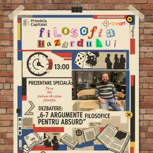 De la ora 13.00, continuăm cu segmentul academic Filosofia Hazardului Creativ, incluzând dezbateri despre absurd, reflecții asupra avangardei și premierea textelor scrise de studenții Facultății de Filosofie.